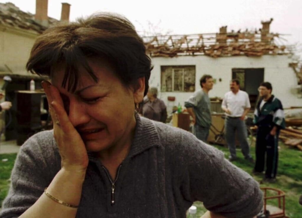 1999年4月9日,在南聯(lián)盟塞爾維亞共和國小城楚皮亞附近的村莊里,42歲的薇拉·米哈洛維奇站在被炸毀的房子前失聲痛哭。1999年3月,以美國為首的北約軍隊打著“避免人道主義災(zāi)難”的旗號,公然繞過聯(lián)合國安理會,對當(dāng)時的南斯拉夫聯(lián)盟共和國進行了78天的持續(xù)轟炸,造成2000多名無辜平民喪生。(新華社記者黃文攝)