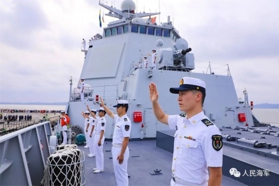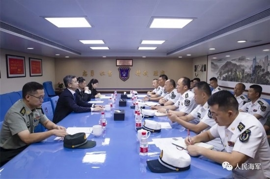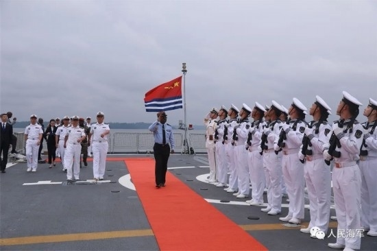 隨后,李津津大使及彭吉中將等一行人登上南寧艦進(jìn)行參觀,彭吉中將在南寧艦艦長和政委的陪同下,檢閱了南寧艦儀仗隊(duì)。