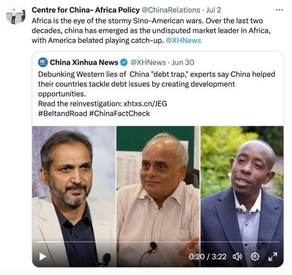 網(wǎng)友“強(qiáng)力挑戰(zhàn)者2269”直言:“如果西方政府和媒體告訴你,你陷入了中國的‘債務(wù)陷阱’,那證明你做對了。對待西方媒體和政府宣傳的信息,你得反著看?!?/p>