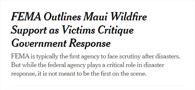 《紐約時報》8月14日報道,聯(lián)邦緊急事務管理局要求人們在網(wǎng)站上注冊后才能獲得臨時住房等援助,但是毛伊島西部受災最嚴重地區(qū)目前依然處于斷電斷網(wǎng)中,那里的災民根本無法登錄網(wǎng)站。