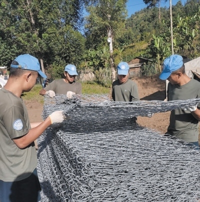 自去年9月部署到任務(wù)區(qū)以來,第二十六批維和工兵分隊已完成32項工程任務(wù)、26項工程勘察,累計修筑道路52公里、搭建板房50間、構(gòu)筑圍墻2100米。今年5月,南基伍省卡萊亥地區(qū)遭受強(qiáng)降雨和洪水災(zāi)害,造成400多人死亡,上千座民居被沖毀。關(guān)鍵運(yùn)輸線路上的魯濟(jì)拉橋被洪水沖垮,切斷了人道主義援助物資的運(yùn)輸線,給當(dāng)?shù)孛癖娊煌ǔ鲂泻涂购榫葹?zāi)造成嚴(yán)重影響。工兵分隊接到任務(wù)后,第一時間奔赴災(zāi)區(qū)一線,在河邊安營扎寨,執(zhí)行工程救援。7月,嶄新的魯濟(jì)拉橋已經(jīng)順利完工。