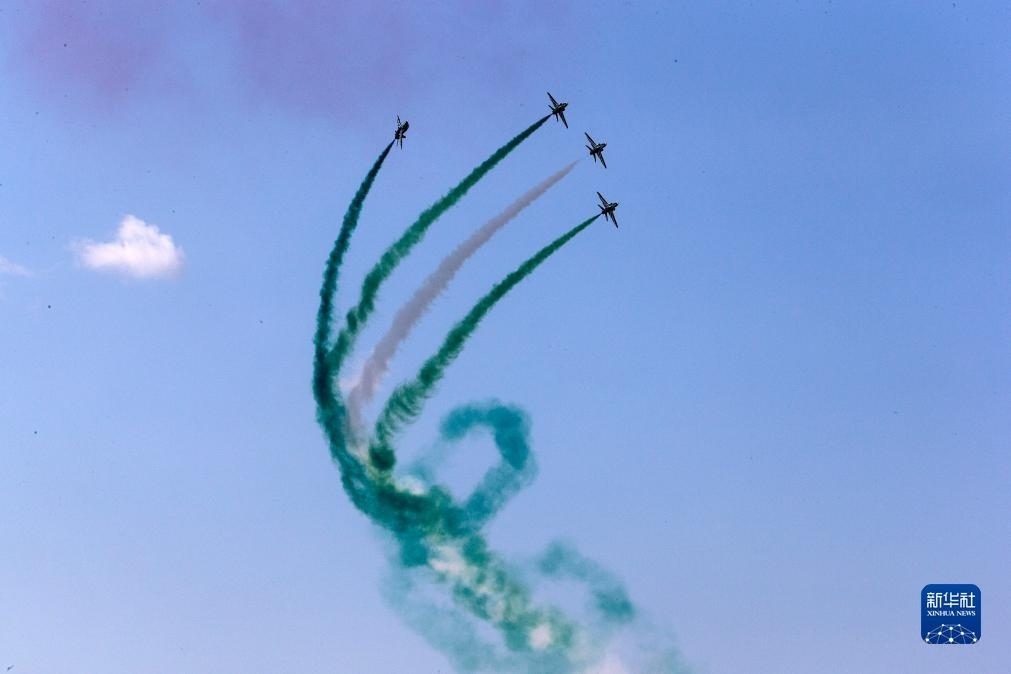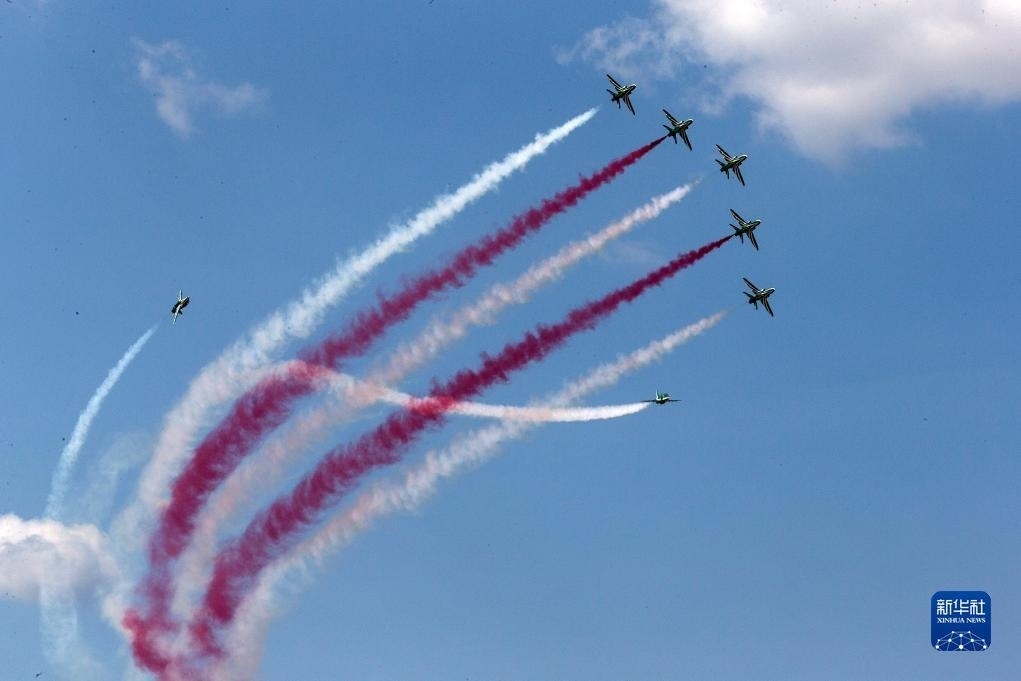 9月2日,在希臘塔納格拉空軍基地的雅典飛行周上,來(lái)自沙特阿拉伯的飛行表演隊(duì)進(jìn)行表演。新華社發(fā)(馬里奧斯·羅洛斯攝)