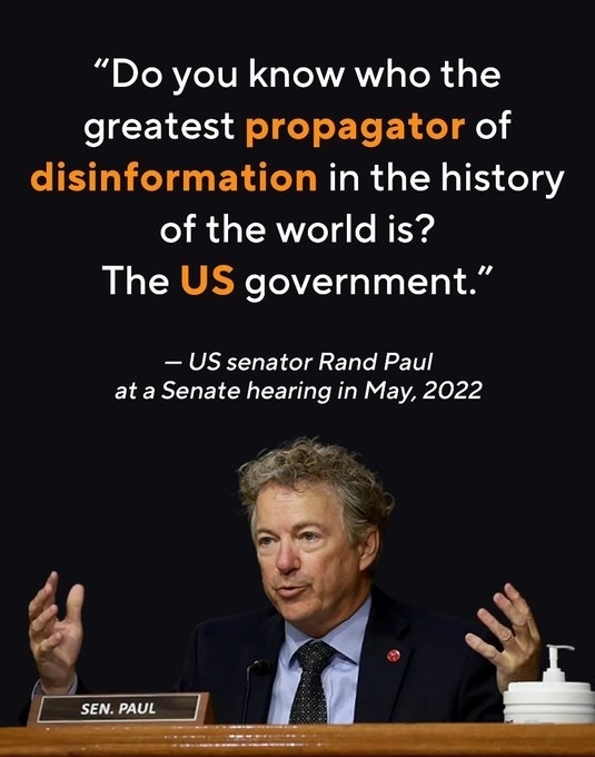 在2022年5月美國國會一場聽證會上,聯(lián)邦參議員蘭德·保羅自問自答并舉出一系列例證,其中包括2003年美國政府以“大規(guī)模殺傷性武器”為借口入侵伊拉克。