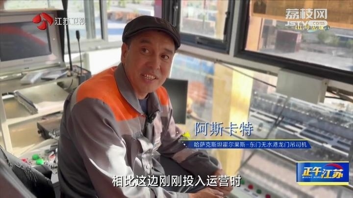 哈薩克斯坦霍爾果斯-東門無水港龍門吊司機(jī)阿斯卡特說:“相比這邊剛剛投入運(yùn)營時(shí),運(yùn)輸量有非常明顯的增加。原來每天1-2列,現(xiàn)在7-8列通過。我收入有增多了,來這之前是3個(gè)小孩,現(xiàn)在是5個(gè)小孩。”
