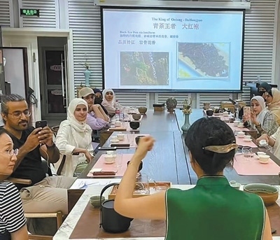 2023年7月,沙特中文學(xué)習(xí)者那丹(左三)在北京語言大學(xué)體驗中國茶文化。以上圖片均為受訪者提供