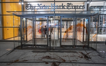 另據(jù)《以色列時報(bào)》報(bào)道,還有示威者在《紐約時報(bào)》總部大樓外集會并在大樓入口處潑上紅色顏料,這些示威者認(rèn)為《紐約時報(bào)》關(guān)于巴以新一輪沖突的報(bào)道偏袒以色列。