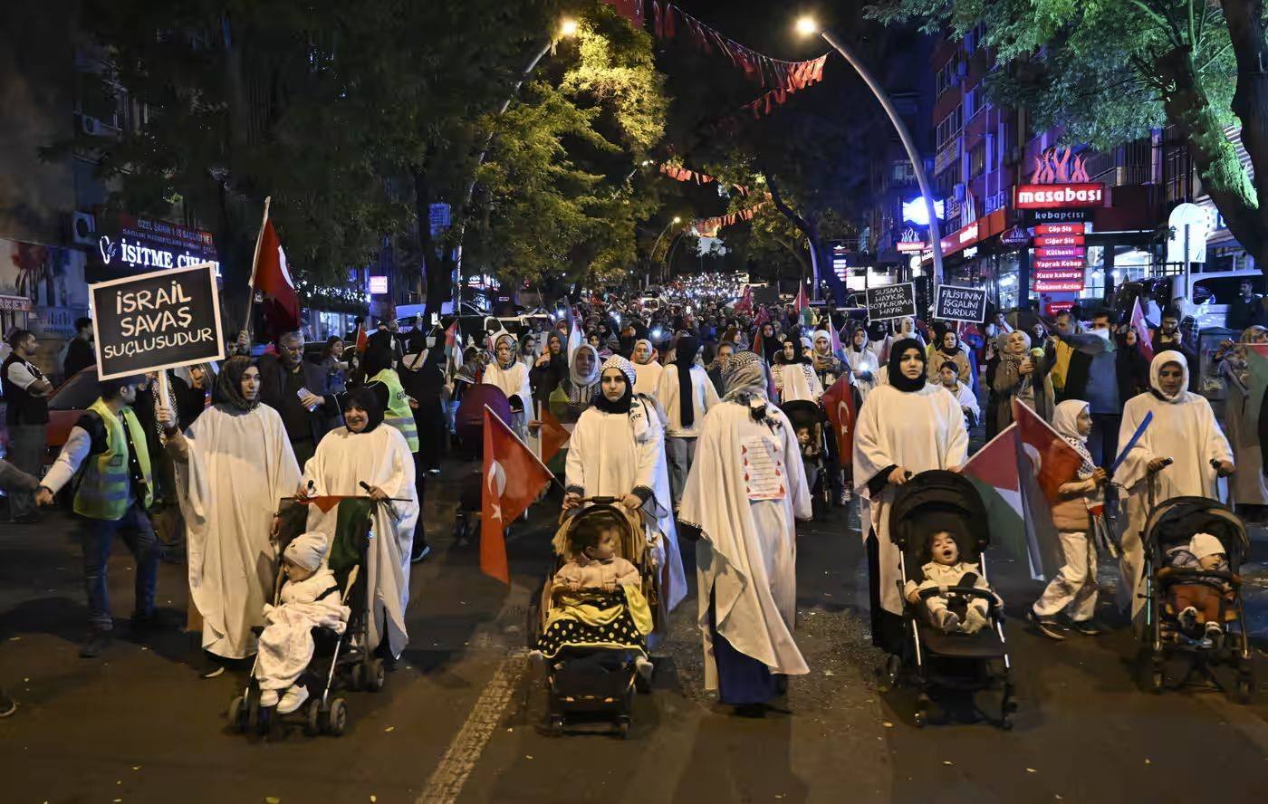 當地時間11日,民眾在土耳其安卡拉參加支持巴勒斯坦游行 圖源:《衛(wèi)報》