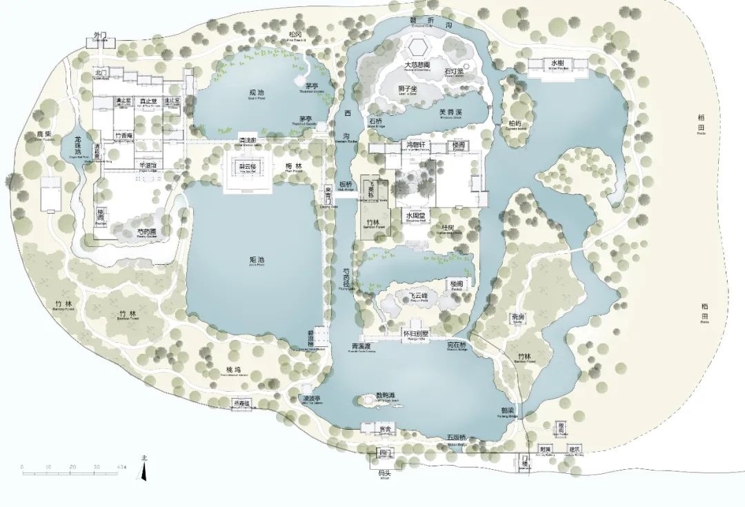 止園平面復原圖。黃曉、王笑竹、戈祎迎繪