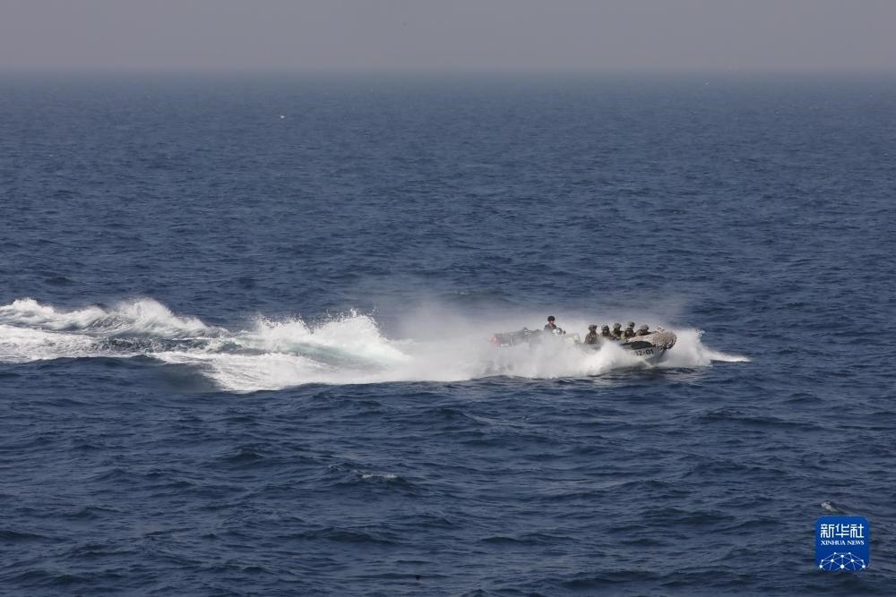 中巴“海洋衛(wèi)士-3”海上聯(lián)合演習(xí)在阿拉伯海北部??沼蚺e行,中國海軍荊州艦特戰(zhàn)隊(duì)員在臨檢拿捕演練中乘小艇前出(11月14日攝)。新華社發(fā)(姜霞攝)