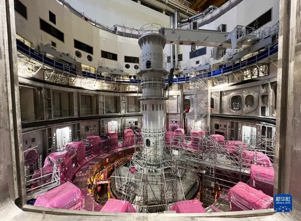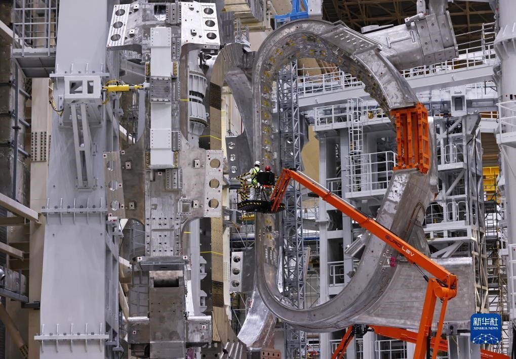 ?這是11月23日在位于法國圣保羅-萊迪朗斯的國際熱核聚變實驗反應堆(ITER)建設現(xiàn)場拍攝的安裝中的托卡馬克裝置。新華社記者 高靜 攝