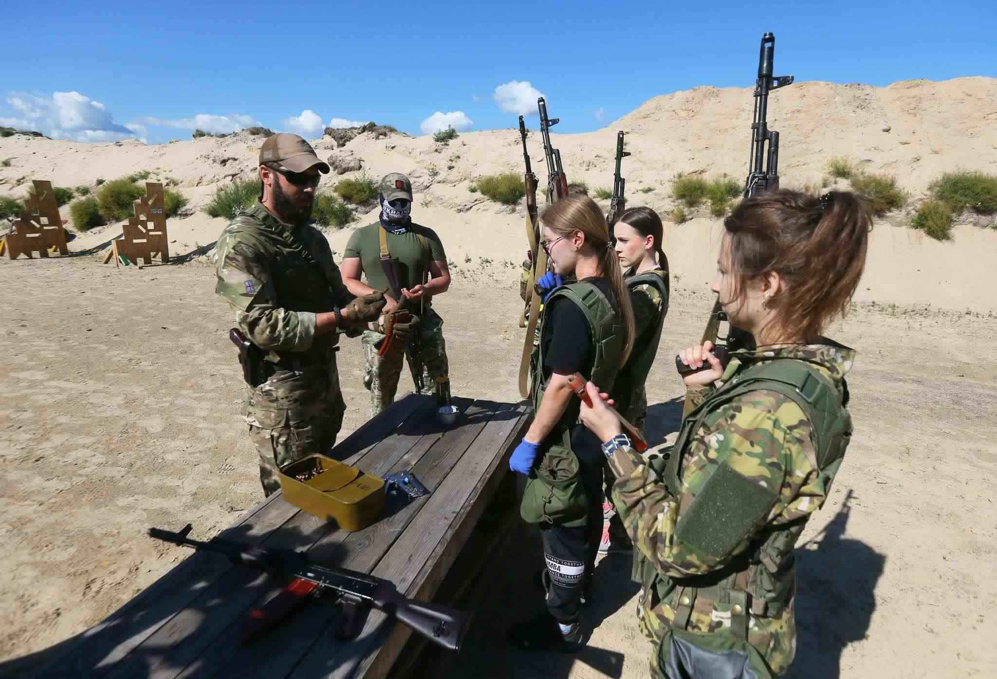 當(dāng)?shù)貢r間2023年7月12日,烏克蘭基輔,烏克蘭女兵學(xué)習(xí)使用槍械。