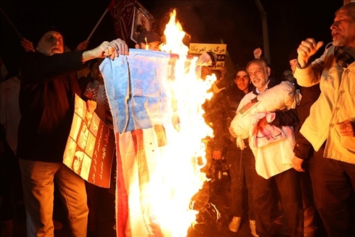 外媒:伊朗首都數百人集會,抗議者在英國大使館外焚燒美英以三國國旗