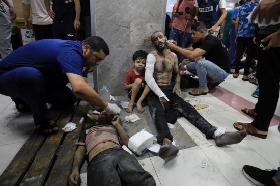 2023年10月23日,在加沙城一家醫(yī)院,醫(yī)護(hù)人員為傷者治療。新華社發(fā)(亞西爾·庫迪攝)