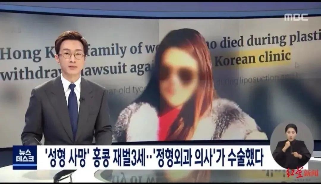 △ 韓媒對于羅某某在韓國整形時意外身亡的報道。截圖自MBC新聞