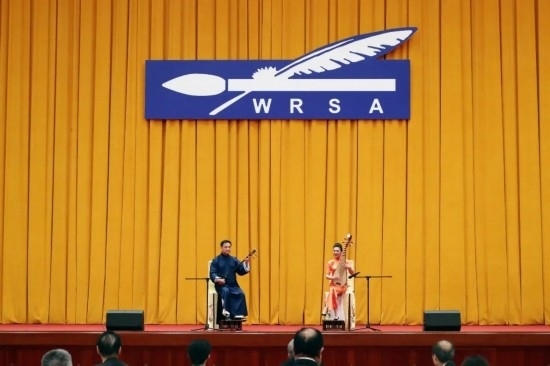 聯(lián)誼會現(xiàn)場,中央民族歌舞團,浙江小百花越劇院、蘇州市評彈團的藝術(shù)家們?yōu)樵趫黾钨e奉上了民族器樂合奏《五色風(fēng)情》、越劇《十八相送》、評彈《姑蘇好風(fēng)光》、歌舞劇《同心共圓中國夢》等文藝節(jié)目,為中外嘉賓帶來一場別具特色的視聽盛宴。
