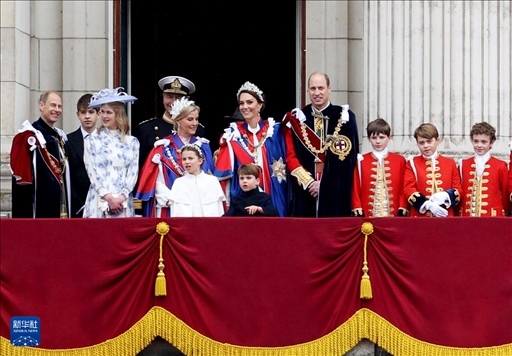 2023年5月6日,凱特王妃(中)在英國(guó)倫敦參加英國(guó)國(guó)王查爾斯三世的加冕儀式后,在白金漢宮陽(yáng)臺(tái)上與民眾見(jiàn)面(資料照片)。新華社記者 李穎 攝