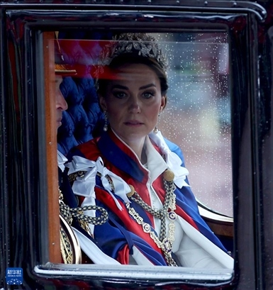 2023年5月6日,凱特王妃在英國(guó)倫敦參加英國(guó)國(guó)王查爾斯三世的加冕儀式后,乘馬車從威斯敏斯特教堂返回白金漢宮(資料照片)。新華社記者 李穎 攝
