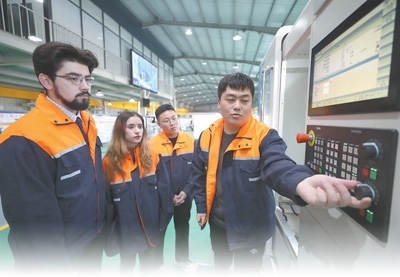 沈陽(yáng)工學(xué)院與武漢華中數(shù)控股份有限公司共同建設(shè)“一帶一路”訂單班,聯(lián)合培養(yǎng)行業(yè)急需的“專業(yè)+俄語(yǔ)”高素質(zhì)應(yīng)用型人才,訂單班學(xué)生畢業(yè)后將回國(guó)從事數(shù)控技術(shù)相關(guān)工作,實(shí)現(xiàn)高質(zhì)量就業(yè)。圖為中國(guó)同學(xué)和留學(xué)生分享操作經(jīng)驗(yàn)。新華社記者 ?楊 ?青攝