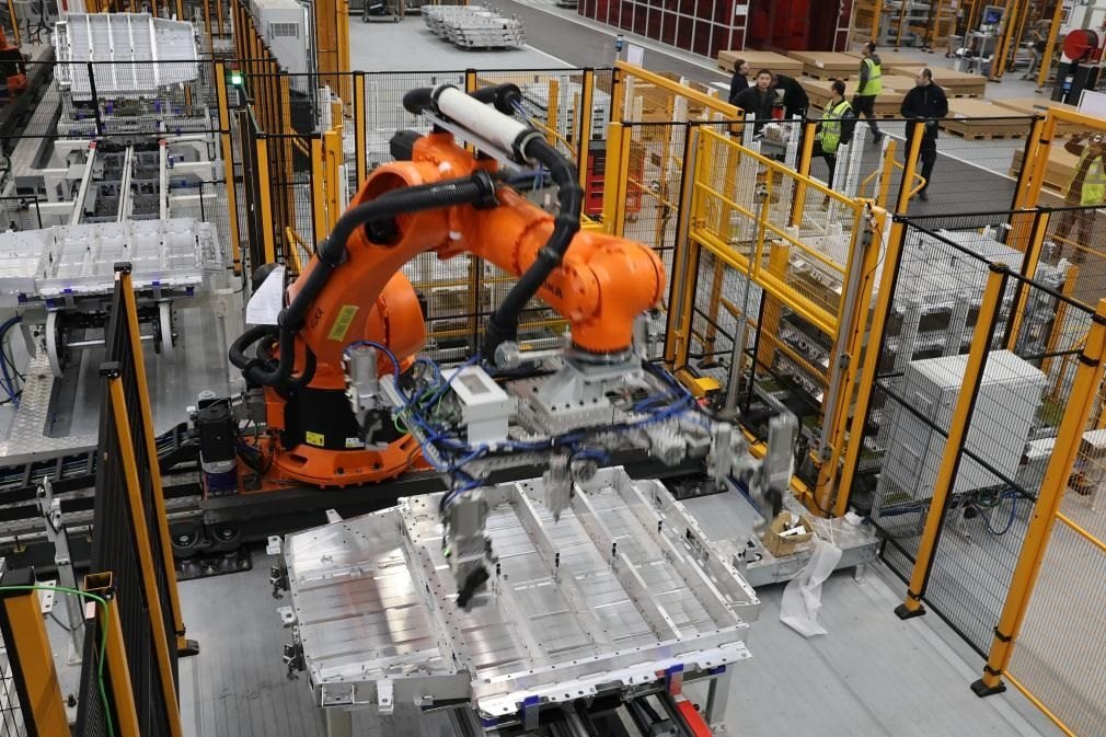 2月23日,在法國呂茨,搬運(yùn)機(jī)器人在中國敏實(shí)集團(tuán)與法國雷諾集團(tuán)成立的合資公司的電池盒產(chǎn)線上工作。新華社記者張百慧攝