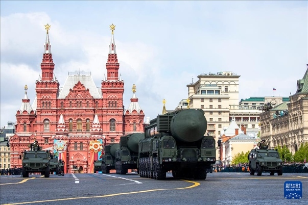 5月9日,在俄羅斯首都莫斯科,“亞爾斯”導(dǎo)彈系統(tǒng)編隊(duì)駛過(guò)紅場(chǎng)。新華社記者 曹陽(yáng) 攝