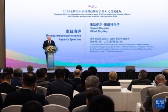 新華社莫斯科9月23日電(記者江宥林 劉愷)當地時間23日,2024金磚國家治國理政研討會暨人文交流論壇在俄羅斯首都莫斯科舉行。來自中國、俄羅斯、印度、巴西、南非、埃及、伊朗、阿聯酋等金磚國家和金磚國家新開發(fā)銀行等的120余名代表圍繞“金磚國家的現代化之路”主題展開研討交流。