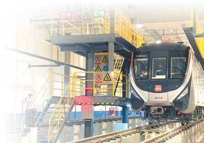 西安地鐵16號線全自動無人駕駛列車正在進(jìn)行檢修。本報記者 張丹華攝