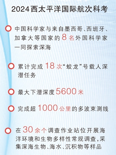 2024西太平洋國際航次科考由自然資源部中國大洋事務管理局統(tǒng)籌國家深?;毓芾碇行慕M織實施,是“數字化深海典型生境”大科學計劃下,首個在公海區(qū)域開展的聯合科考,也是首次有外國科學家搭乘“蛟龍”號開展深海科考。