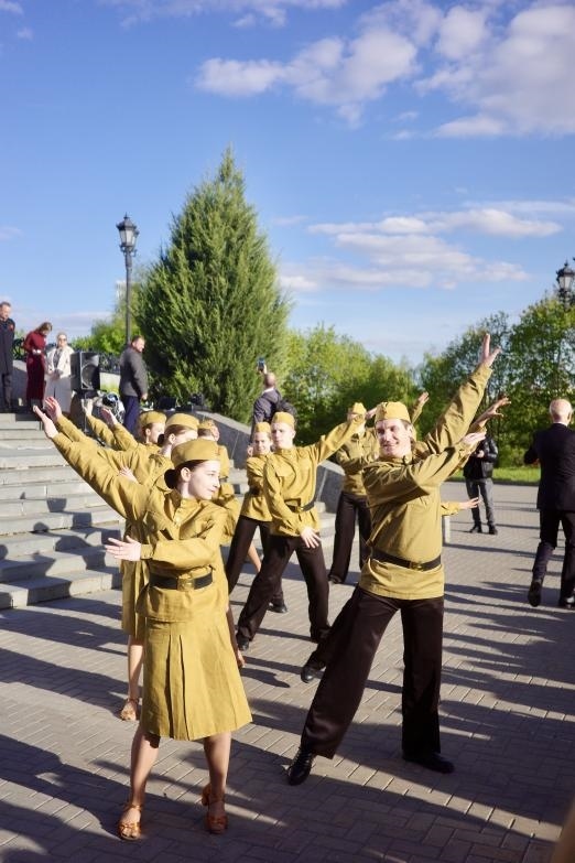 莫斯科勝利廣場(chǎng),是1995年為了紀(jì)念反法西斯戰(zhàn)爭(zhēng)勝利50周年而建成。當(dāng)?shù)貢r(shí)間5月6日,勝利廣場(chǎng)上,當(dāng)?shù)啬贻p人穿上二戰(zhàn)時(shí)蘇聯(lián)軍隊(duì)的制服,在音樂聲中翩翩起舞,吸引了很多人駐足。劉少華 攝