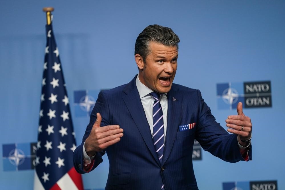 10月15日,在比利時(shí)布魯塞爾,美國國防部長(zhǎng)赫格塞思在記者會(huì)上發(fā)言。新華社記者彭子洋攝