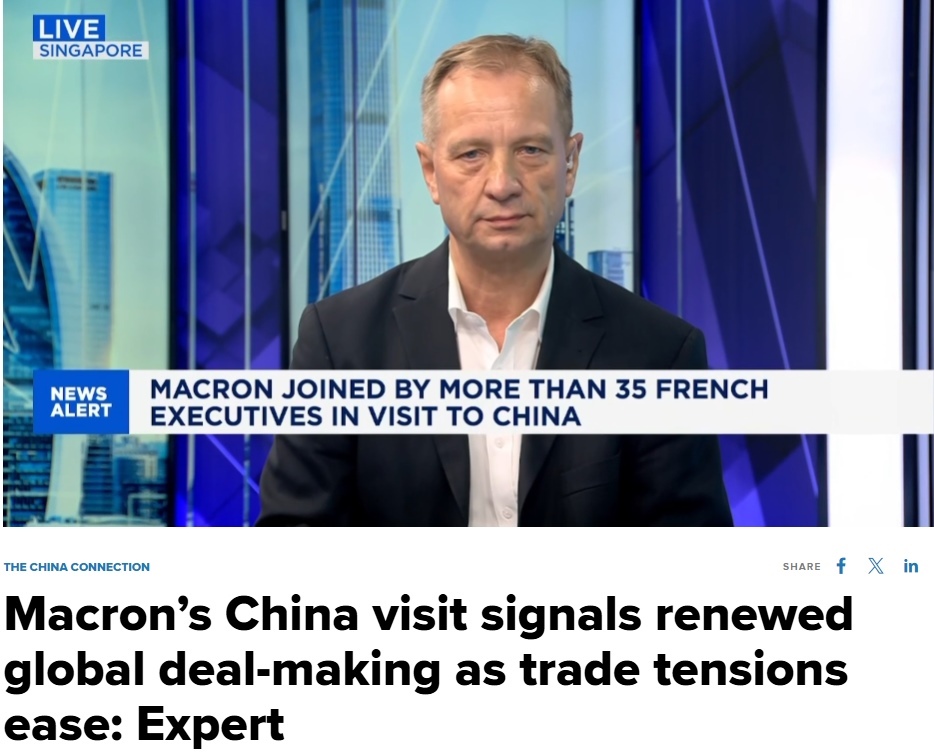 近日,法國總統(tǒng)馬克龍的訪華之行引發(fā)國際社會廣泛關注。美國消費者新聞與商業(yè)頻道(CNBC)采訪專家指出,這一中法重要外交活動標志著全球貿易緊張局勢的緩和,意味著一度受阻的全球貿易談判重回正軌,為國際經貿合作注入新的活力。