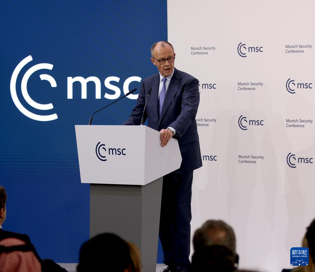 2月13日,在德國慕尼黑,德國總理默茨在第62屆慕尼黑安全會(huì)議(慕安會(huì))開幕式上致辭。新華社記者 李穎 攝