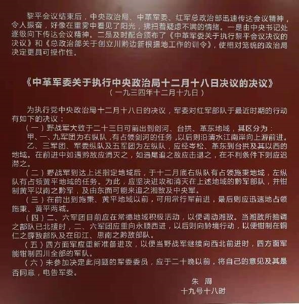 二是中革軍委為執(zhí)行黎平會議決議及時作出行動部署。