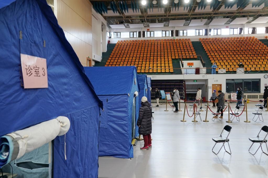這是2022年12月24日拍攝的北京市西城區(qū)廣安體育館簡易發(fā)熱門診。新華社記者 張晨霖 攝
