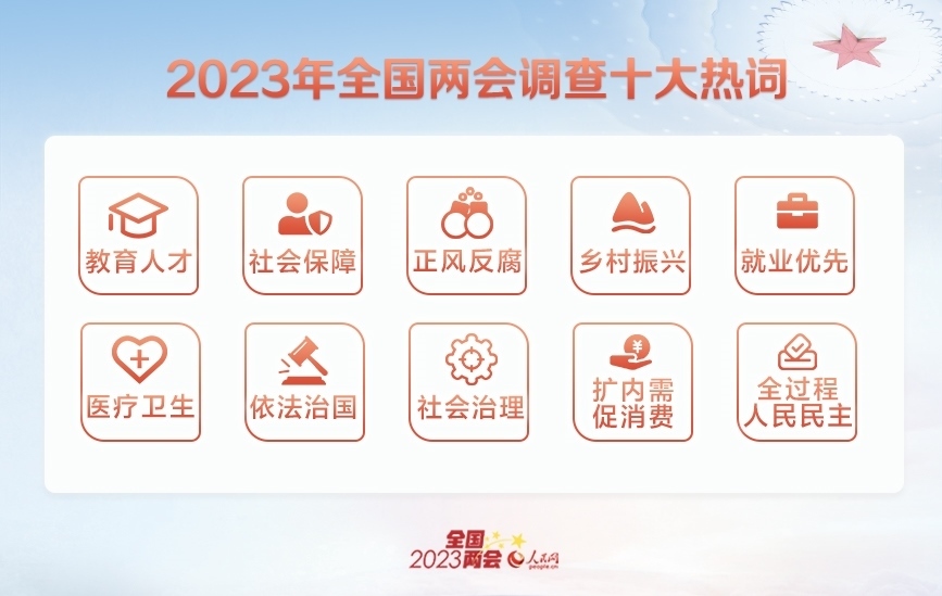2023年全國兩會(huì)調(diào)查結(jié)果出爐 教育人才、社會(huì)保障、正風(fēng)反腐最受網(wǎng)友關(guān)注