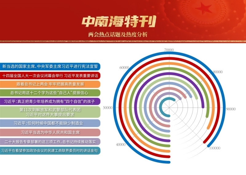 3月,世界目光,聚焦北京。近3000名中外記者采訪報道全國兩會。央視網“智聞”系統(tǒng)提取分析兩會期間全網時政新聞熱點顯示,習近平總書記的兩會關切吸引全網目光,新征程領路人的人民情懷成為網友“兩會印象”最深刻的主題之一。