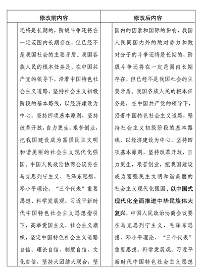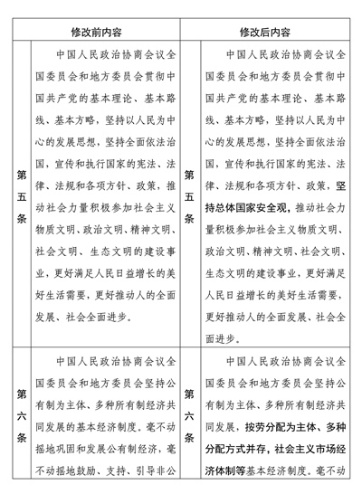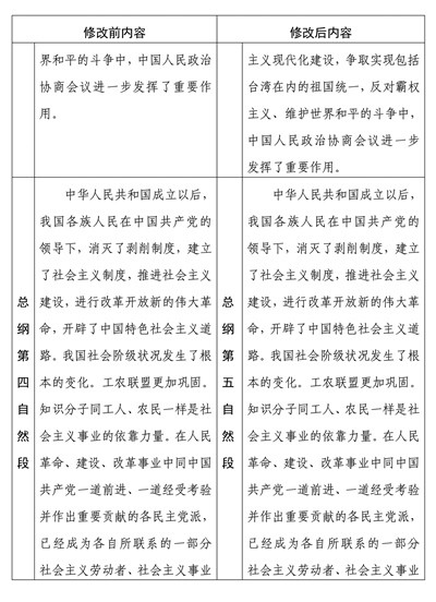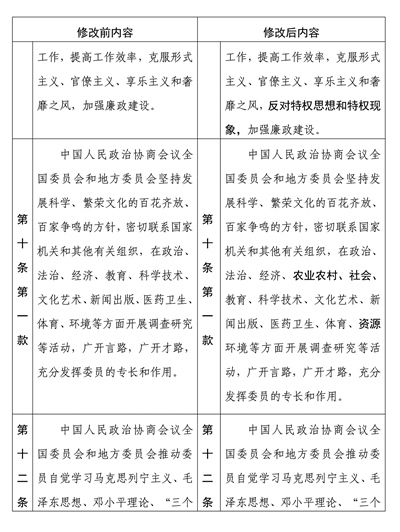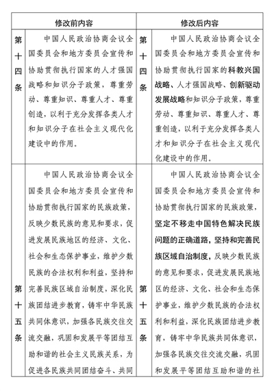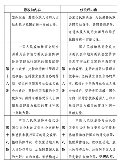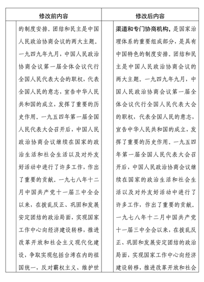 中國人民政治協(xié)商會議章程修改前后內(nèi)容對照表