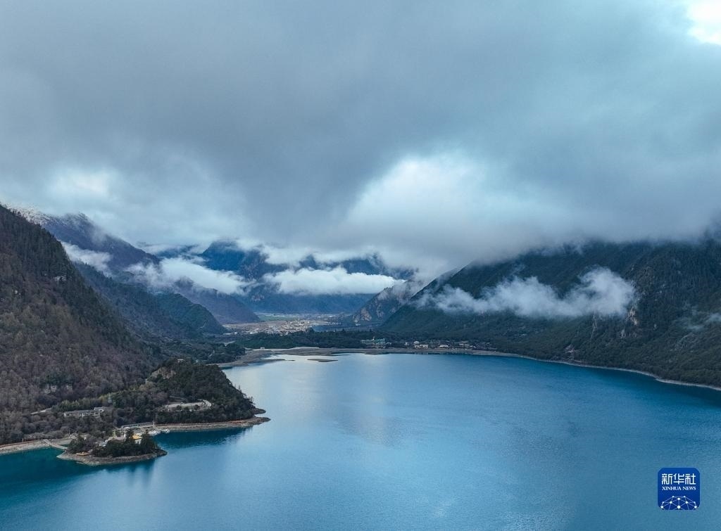 4月17日拍攝的巴松措(無人機(jī)照片)。