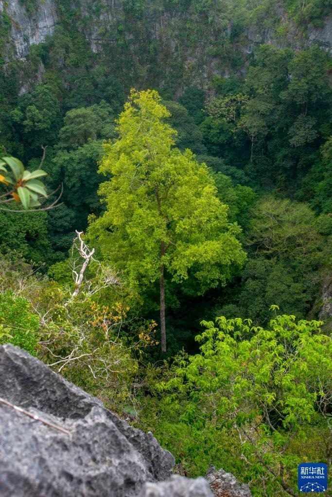 3月15日拍攝的位于巖溶峰叢洼地中的望天樹。   新華社發(fā)(曾繼謀 攝)