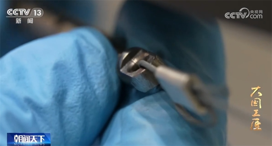 航天科技集團(tuán)八院空間飛行器總裝組組長(zhǎng) 曹毅:這個(gè)表針幾乎是不動(dòng)的,(記者:就是零誤差?)對(duì)。神舟號(hào)或者天宮號(hào),還有貨運(yùn)飛船的,還有涵蓋所有的其他衛(wèi)星的鉸鏈都是我們從這邊裝配調(diào)試發(fā)展出來的,百分之百成功。