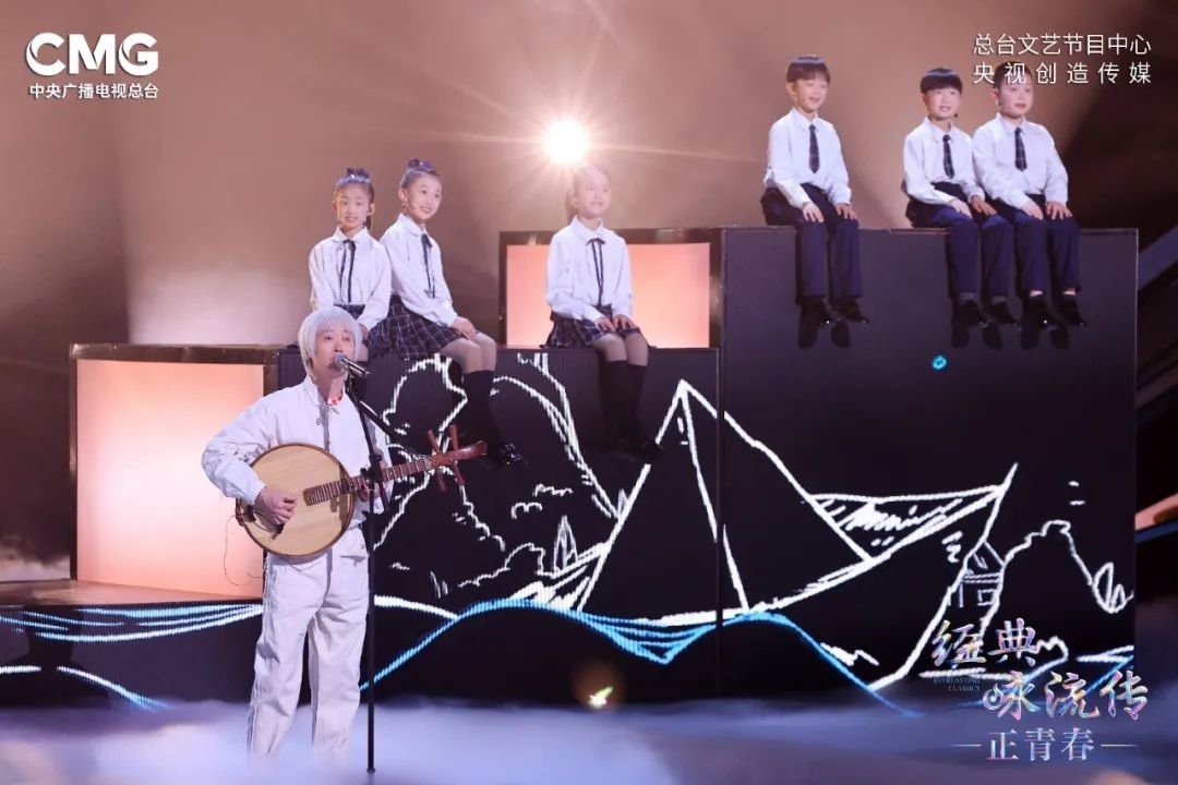 “逝者如斯夫,不舍晝夜?!痹跁r(shí)光的流逝中,最值得懷念的是那一去不復(fù)返的青春。無數(shù)文人墨客通過文字去珍藏時(shí)光的記憶,去尋找青春的蹤跡。“一葉漁船兩小童,收篙停棹坐船中”,宋朝詩人楊萬里用一首清新自然的《舟過安仁》記錄美好童年。而對于很多現(xiàn)代人來說,童謠寄托著童年的回憶?!皩ぶ{計(jì)劃”項(xiàng)目發(fā)起人小河將楊萬里的詩詞巧妙改編成童謠,帶來充滿童趣的《搖船》舞臺。當(dāng)天真爛漫的孩童將詩詞娓娓唱出,瞬間帶領(lǐng)觀眾穿越回詩中場景,也穿越回記憶中的童年。現(xiàn)場還迎來一位特殊的嘉賓——84歲老人何洪瑞。他與小河還有孩子們一同唱響了記憶深處的童謠《盧溝橋》,此刻,跨越時(shí)間的永恒情感就這樣在音符中碰撞、交融。