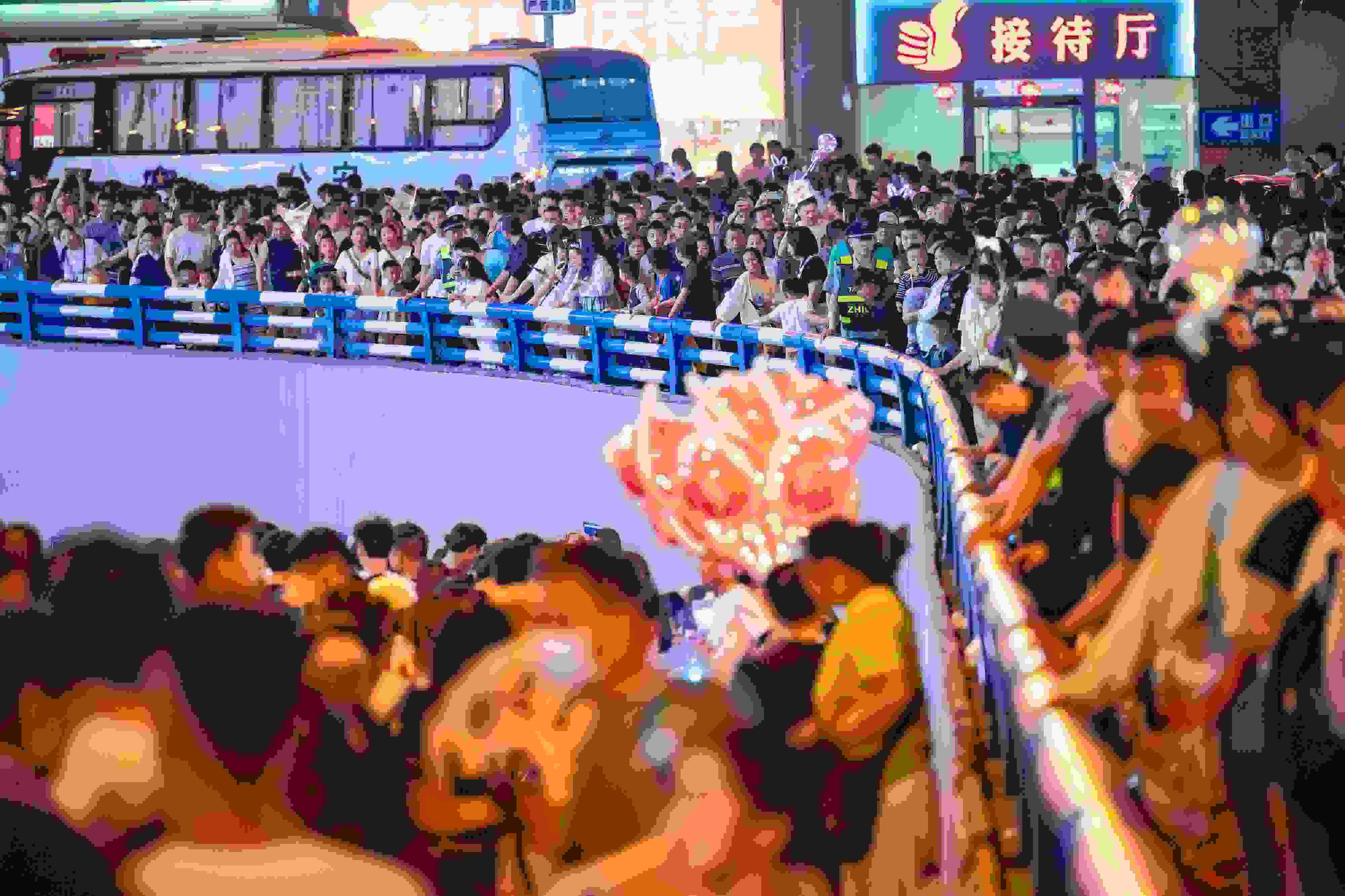2023年4月30日,重慶,洪崖洞等熱門景點(diǎn)迎來(lái)游客高峰,千廝門大橋等多條主干道開啟實(shí)行交通管制,方便游客出行。 視覺中國(guó)