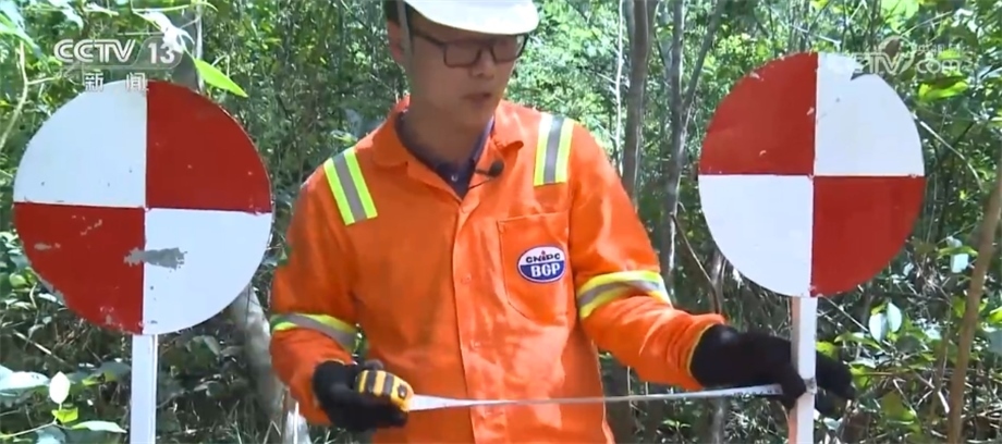 巴西米拉多爾項(xiàng)目負(fù)責(zé)人 孫?。?/strong>這是為了測(cè)量我們清線的寬度,因?yàn)榘凑债?dāng)?shù)氐姆梢?guī)定,我們可以清1.2米,但是我們可以看到這里是80多公分不到90公分,也就是說(shuō)我們的標(biāo)準(zhǔn)都是高于當(dāng)?shù)丨h(huán)保的標(biāo)準(zhǔn)和法律的要求。