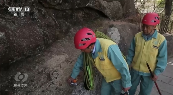 黃山放繩工李培生:“當(dāng)時下去肯定怕,翻過欄桿一剎那,回過頭看到懸崖下面的時候,那是萬丈懸崖,心里也沒有底。”