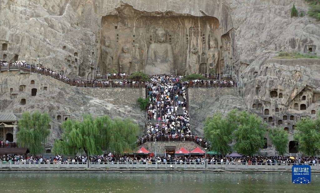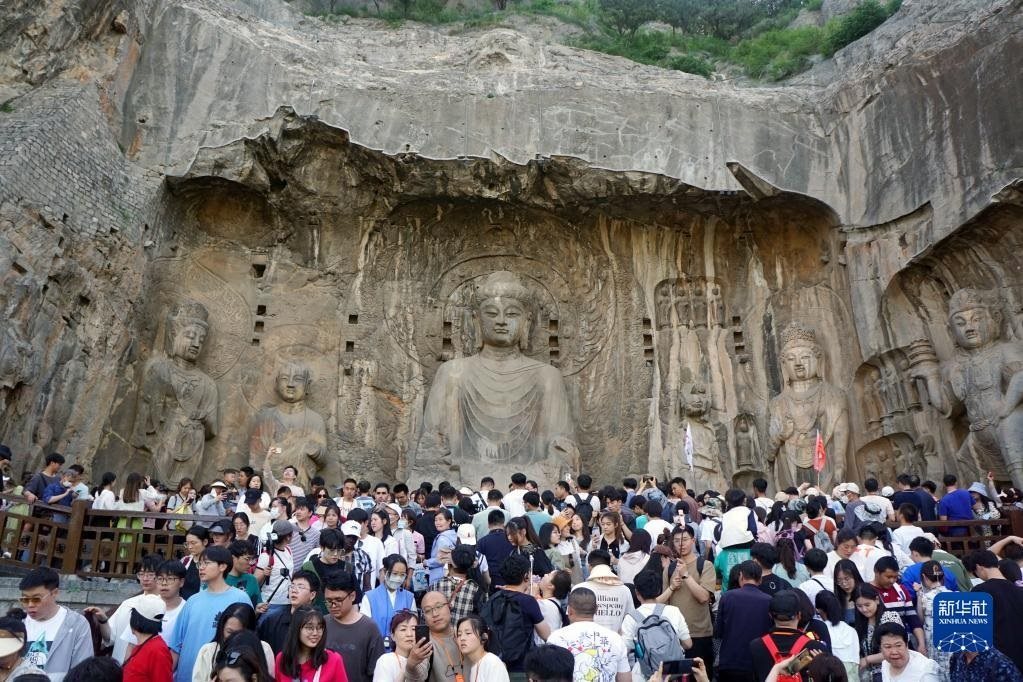 4月30日,游客在河南洛陽龍門石窟景區(qū)游覽。   新華社記者 侯俊 攝