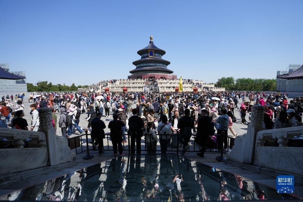 4月29日,游客在北京天壇公園參觀游覽。   新華社記者 鞠煥宗 攝