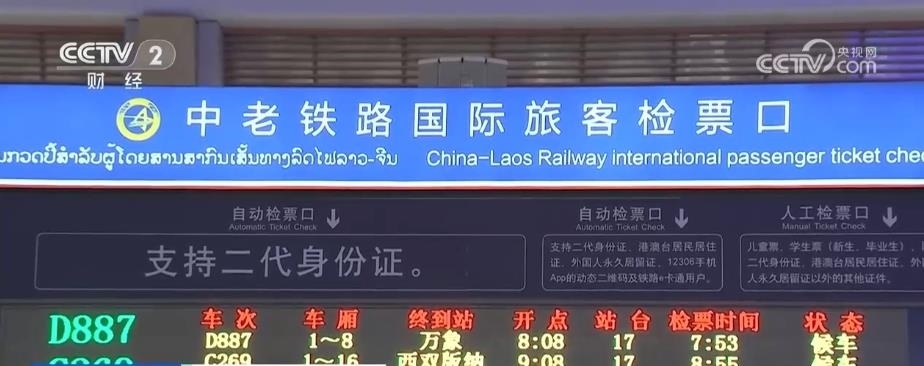 記者 范紫霄:經(jīng)過20分鐘的車程,我們現(xiàn)在已經(jīng)到了昆明南站的西進(jìn)站口?!拔逡弧毙¢L假已經(jīng)到來,大家可以看到我身后人頭攢動、人流不斷。今天,我們也將體驗一下當(dāng)日就能直達(dá)老撾萬象的D887中老鐵路國際客運列車。這趟列車在今早8時08分發(fā)車。