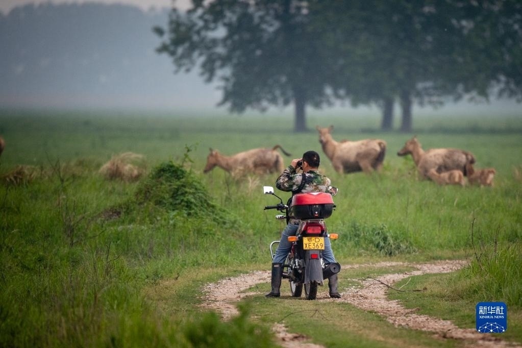 巡護(hù)隊(duì)伍通過(guò)望遠(yuǎn)鏡、長(zhǎng)焦相機(jī)、無(wú)人機(jī)、視頻監(jiān)測(cè)塔、紅外相機(jī)等工具,對(duì)1500余頭麋鹿進(jìn)行日常監(jiān)測(cè)、年節(jié)律周期監(jiān)測(cè)、種群動(dòng)態(tài)監(jiān)測(cè),并對(duì)保護(hù)區(qū)內(nèi)的氣象數(shù)據(jù)、水文數(shù)據(jù)、地表水質(zhì)數(shù)據(jù)、植被類(lèi)型以及其他野生動(dòng)物情況進(jìn)行監(jiān)測(cè)記錄。他們還需要承擔(dān)卡口值守、應(yīng)急管理等工作。在他們的悉心照料下,這里成為適宜麋鹿種群棲息的家園。   新華社記者 伍志尊 攝