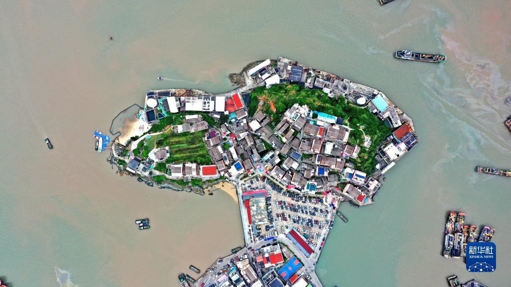 5月2日拍攝的浙江省溫嶺市石塘鎮(zhèn)七彩小箬村(無(wú)人機(jī)照片)。
