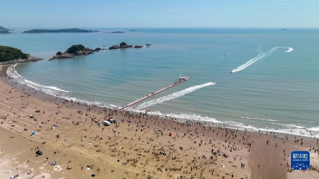 5月2日,游客在浙江省舟山市朱家尖大青山里沙景區(qū)游玩(無(wú)人機(jī)照片)。