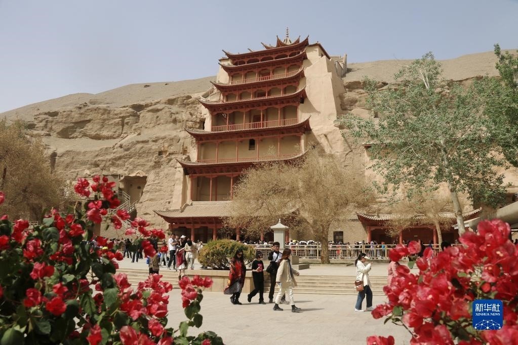 游客在莫高窟游覽(5月2日攝)。